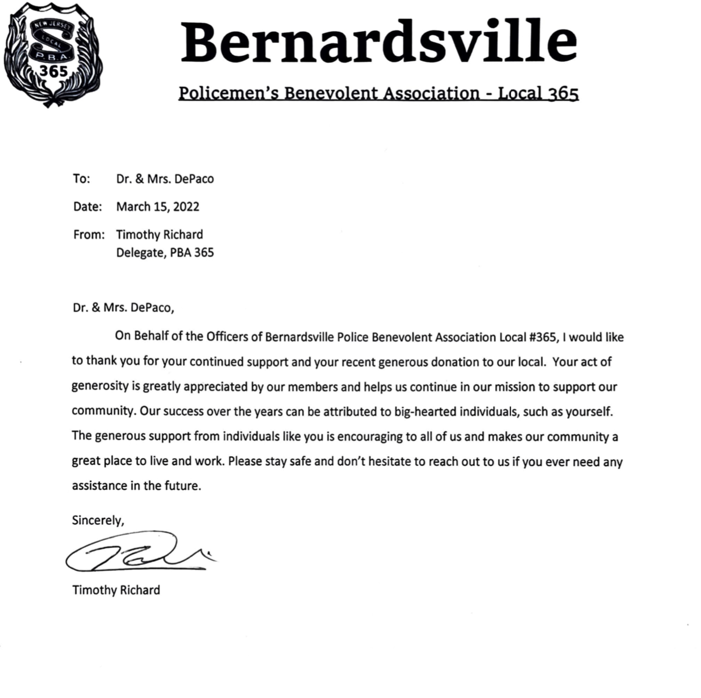 Bernardsville Policemen’s Benevolent Association – Local 365 – Caesar DePaço